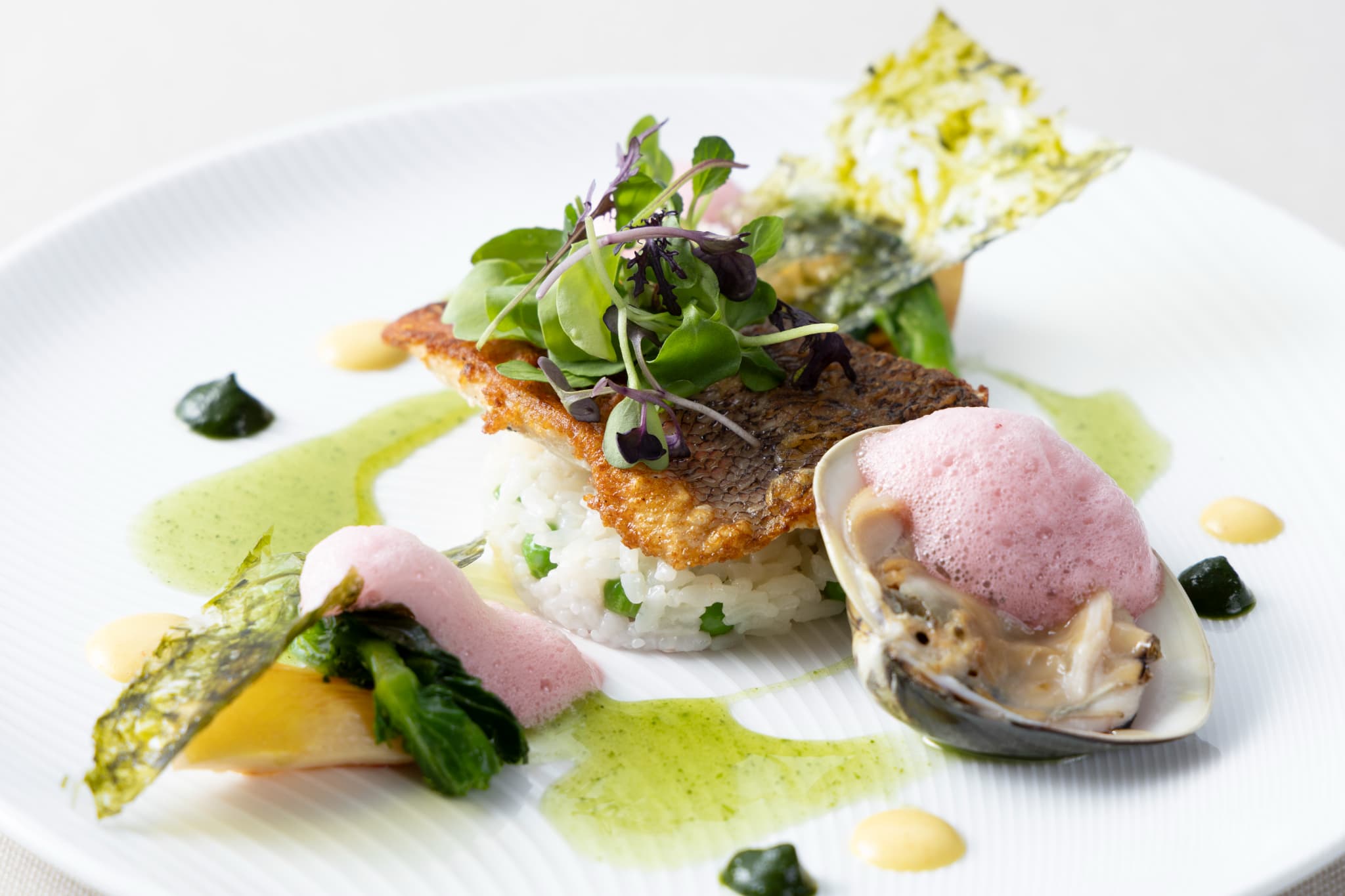・メニュー:春を告げるメバルのソテーと青豆のリゾット~春野菜と共に~