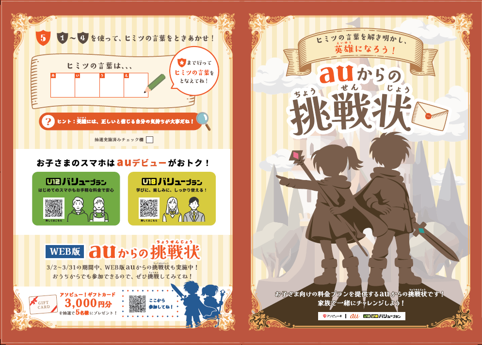 お子さま向けの料金プランを提供するauが、家族みんなで楽しめる期間限定の謎解きイベントを開催します。