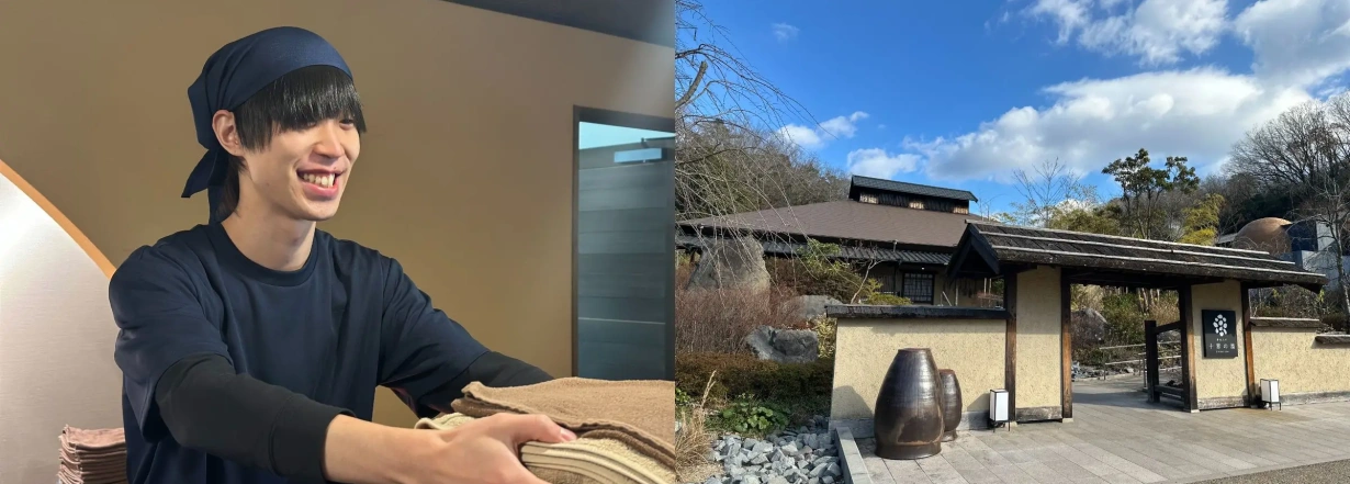 【受付、館内着受け渡し】 パーク内にある関西No.1贅沢露天風呂を誇る温浴施設【十界の湯】のフロントバディとして、受付やレジ業務などを担当。温泉に入りに来るゲストを一番にお迎えするポジションとして、パークで遊び疲れたゲストにやすらぎと癒しを提供します。大自然に囲まれた天然温泉で、パークとは一味違った体験をお届け!明るい接客、誠実な応対で心安らぐ空間を演出します!